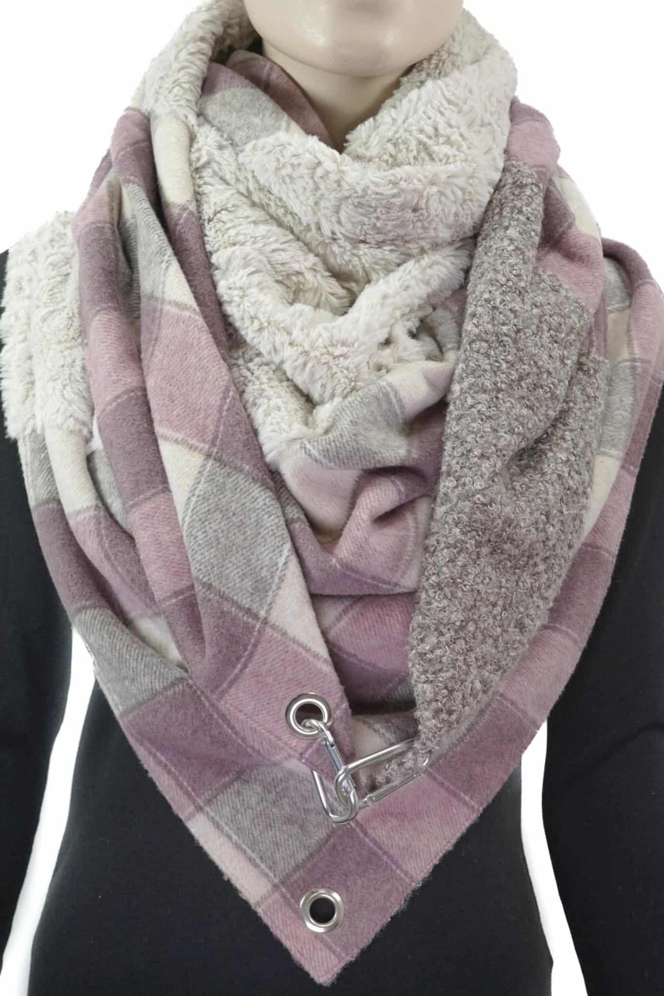 Dreieckstuch mit Karabiner, kariert, rosa-taupe-creme, warm & kuschelig