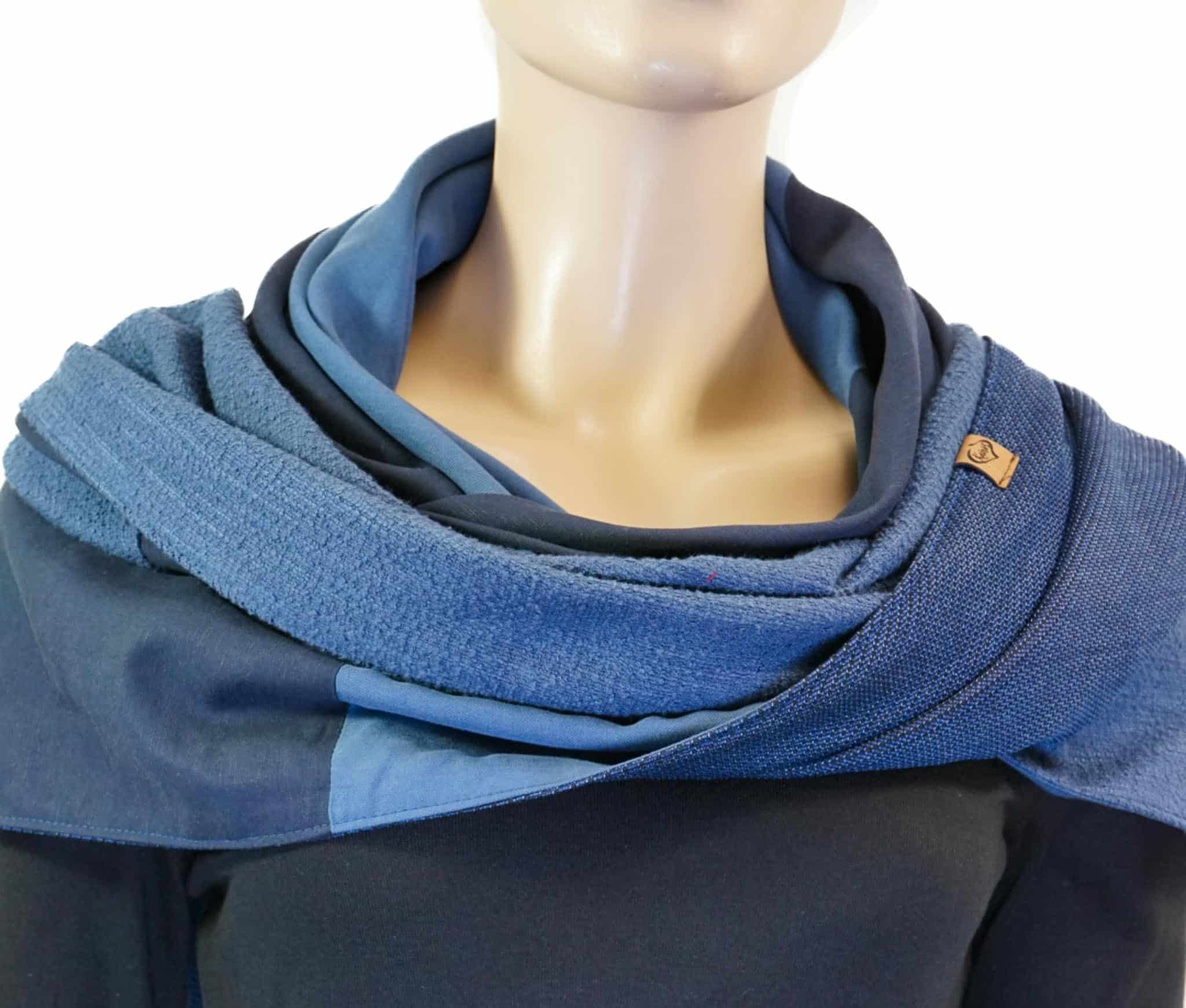 Dieses Sommertuch ist ein absoluter Muss und ein wahres IT-Piece in deinem Kleiderschrank. Die eine Seite präsentiert sich in floralem Print mit vielen Blaugrau Nuancen, während die andere Seite etwas ruhiger mit Uni Blau an der Spitze gefertigt wurde. Du kannst dieses Karabinertuch ganz klassisch zu Jeans und Shirt tragen, aber auch elegant mit einer Bluse kombinieren. Ein Outfit mit blauer Leinenhose und hellem Shirt kann ich mir auch gut vorstellen.