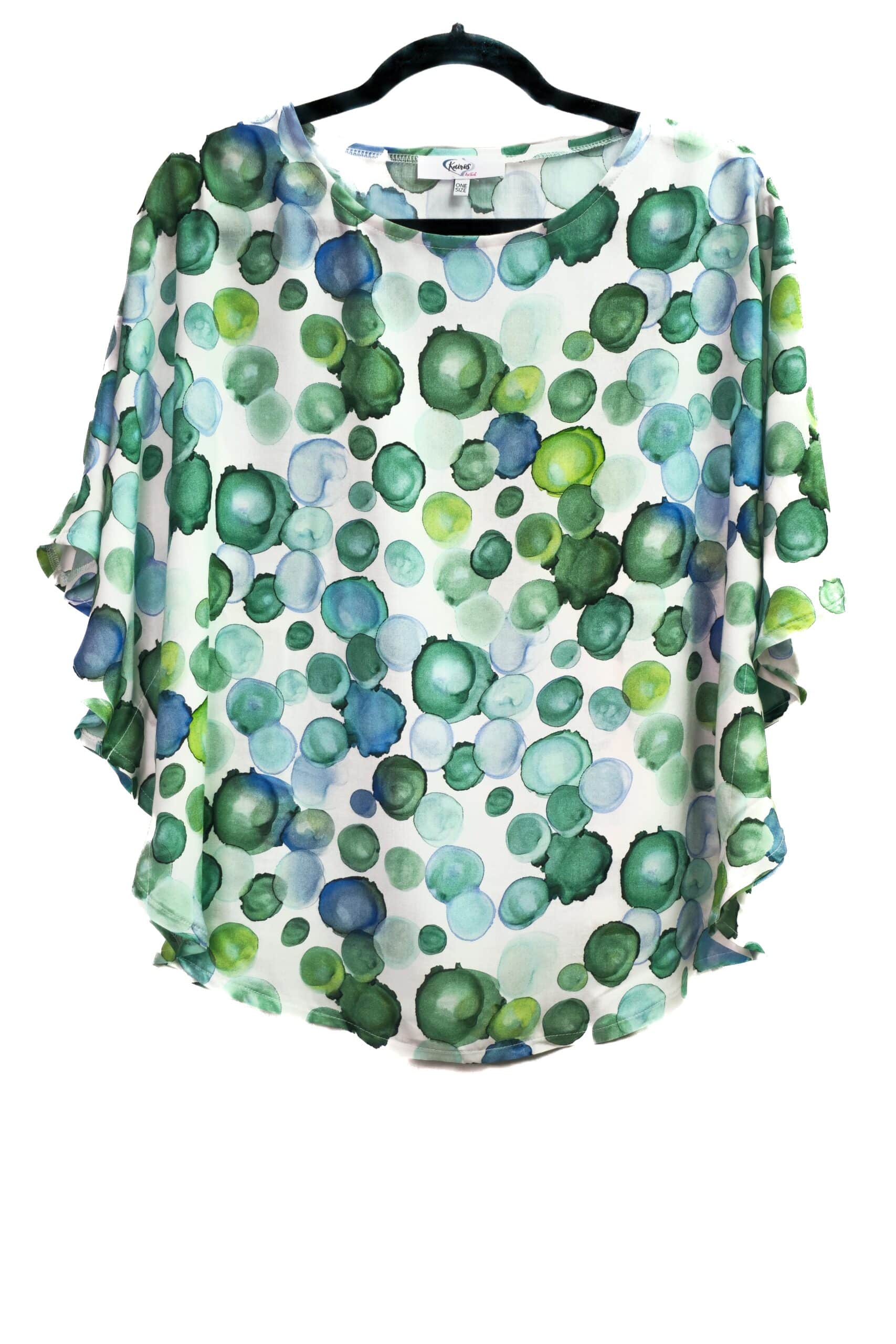 Frisch, luftig und lebendig. Zarte Minttöne treffen auf aquarellartige Tropfen in Grün und Blau – wie Regentropfen auf Wasser