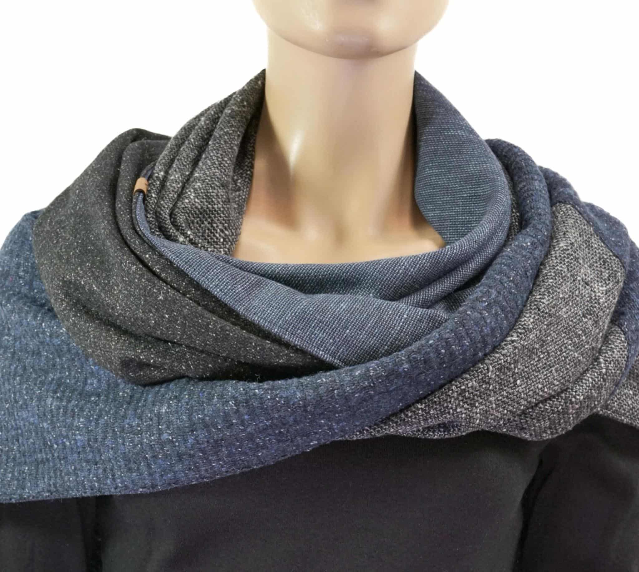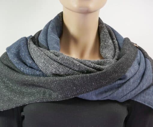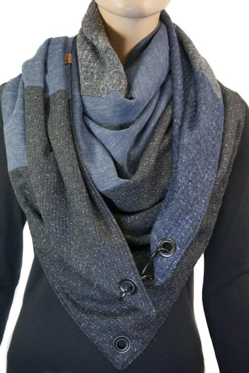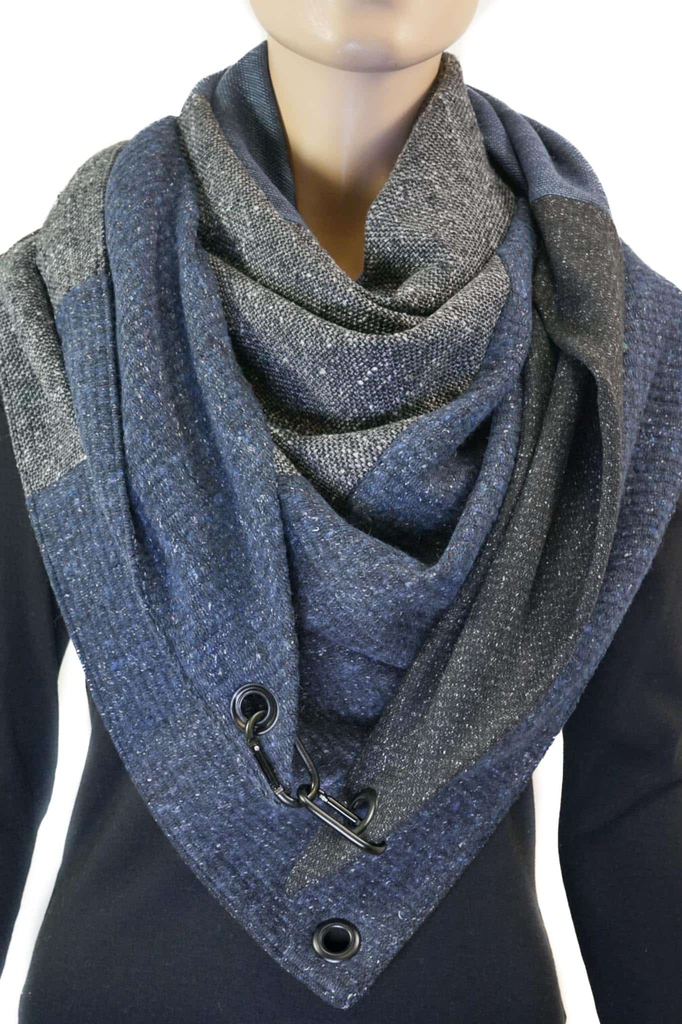 Dreieckstuch mit Karabiner, Wollmix in schwarz-grau-blau