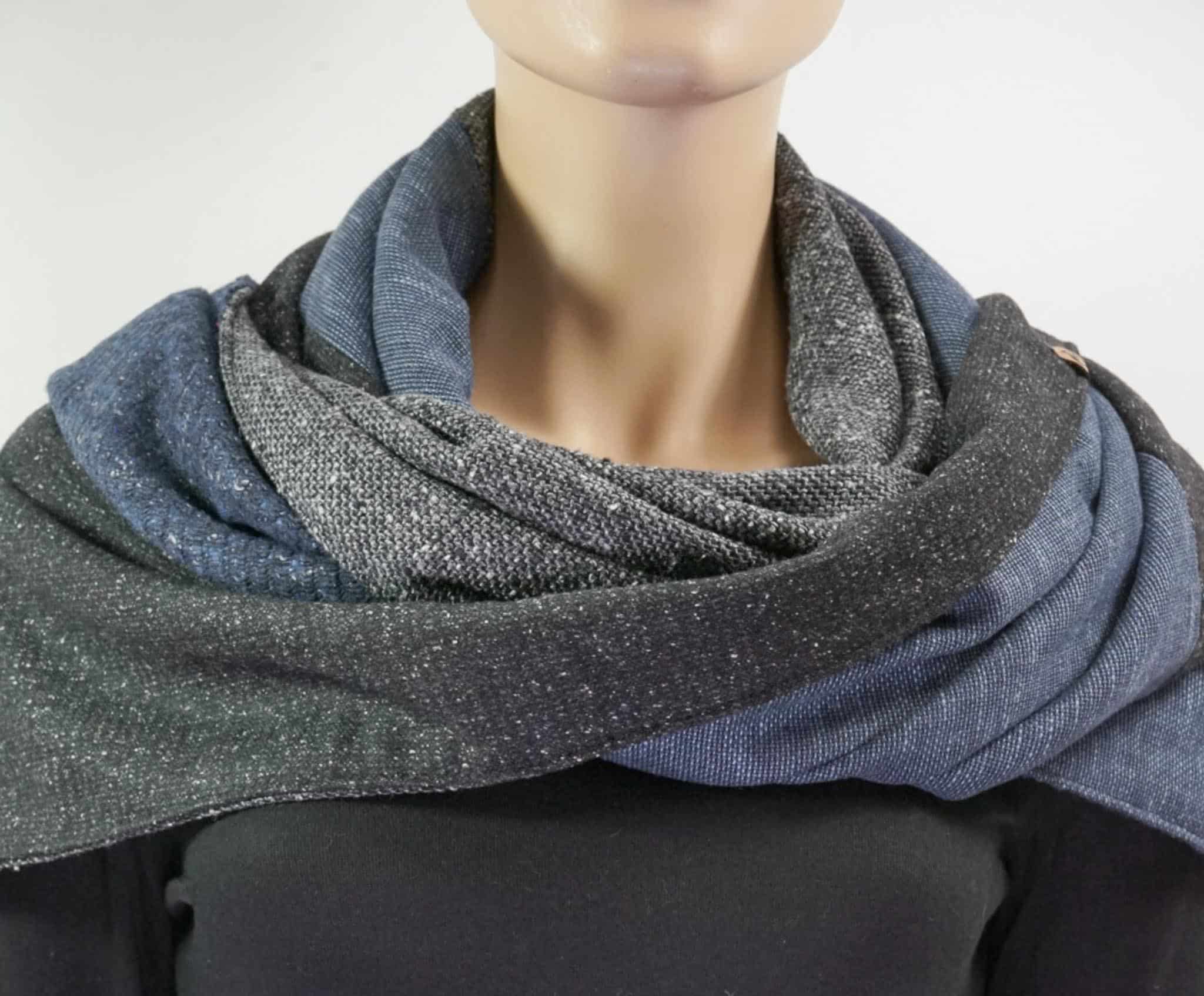 Ein Dreieckstuch in klassischem Materialmix – warm, stilvoll & handmade in Schwabach.